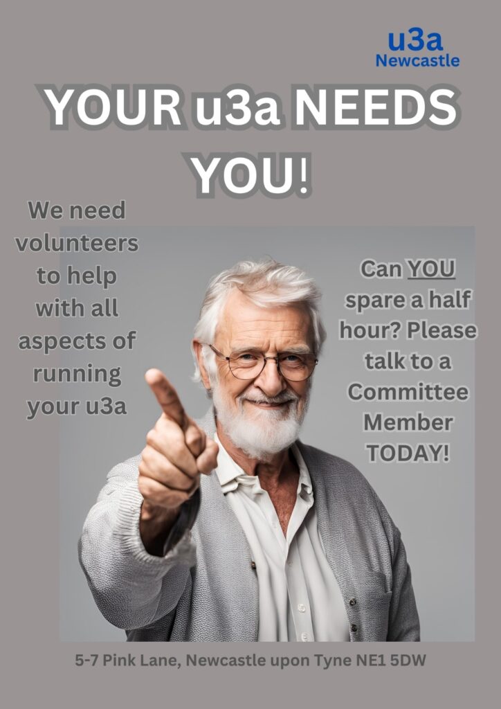 Our Committee Members and Group Leaders will continue to plan, organise, and to do the BIG jobs on your behalf but your additional help is needed. U3a is a team effort with everyone helping each other! We would love to hear from you either as a volunteer or any good ideas you have.